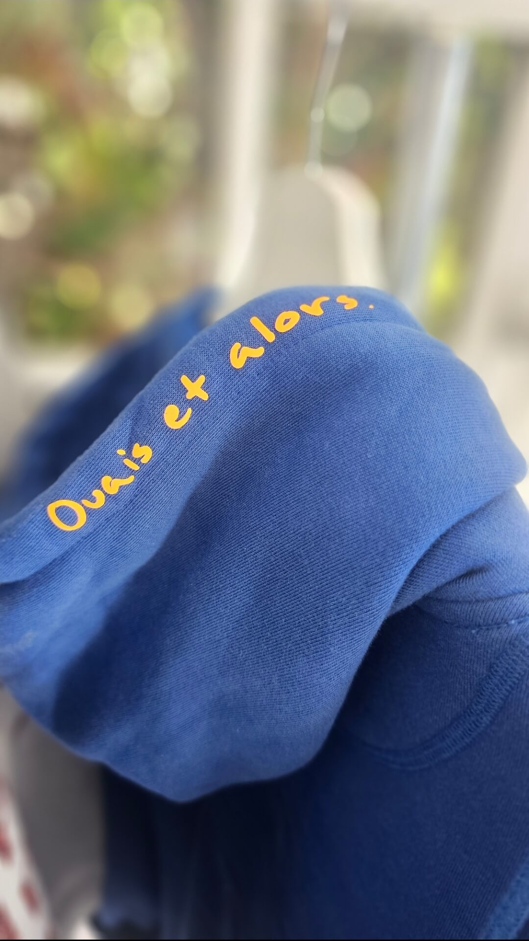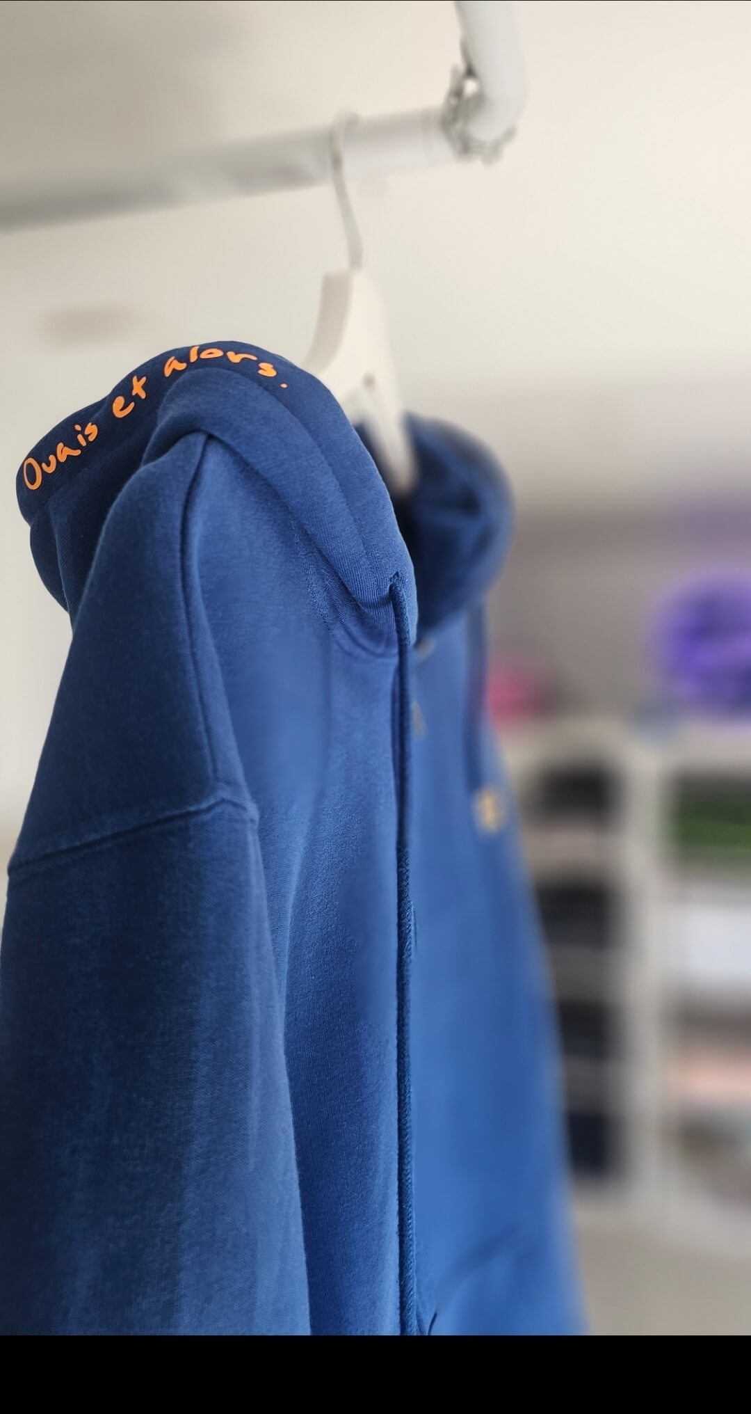 Affirme ton style avec le gilet zippé bleu royal Ouais et alors, conçu dans un coton biologique épais pour un confort premium au quotidien. Sa coupe moderne et son logo discret en font un essentiel facile à porter, entre streetwear et casual chic.