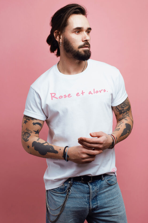 Le tee-shirt Rose et alors a été créé pour toutes les femmes atteintes du cancer du sein qui ont subi des regards sur leur poitrine, ou sur l’absence de celle-ci. Pour répondre à ces regards, nous avons adapté notre nom de marque : Ouais et alors en Rose en alors.